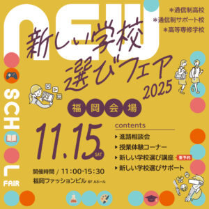 11/15[土]に福岡市で開催の【新しい学校選びフェア】に本校も参加します。